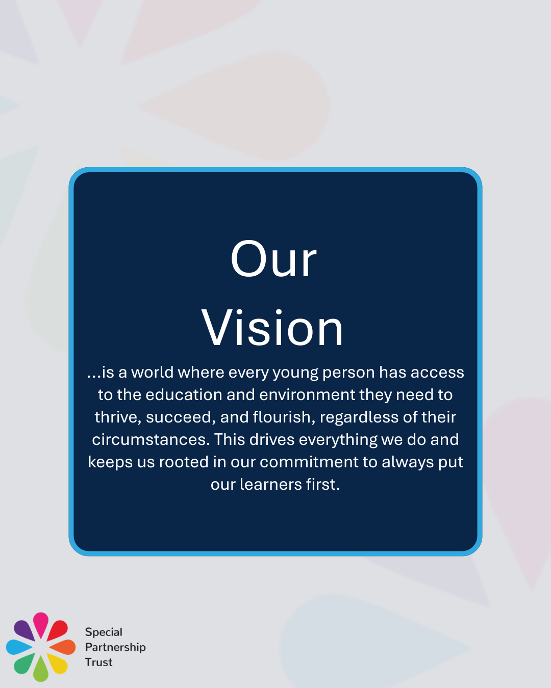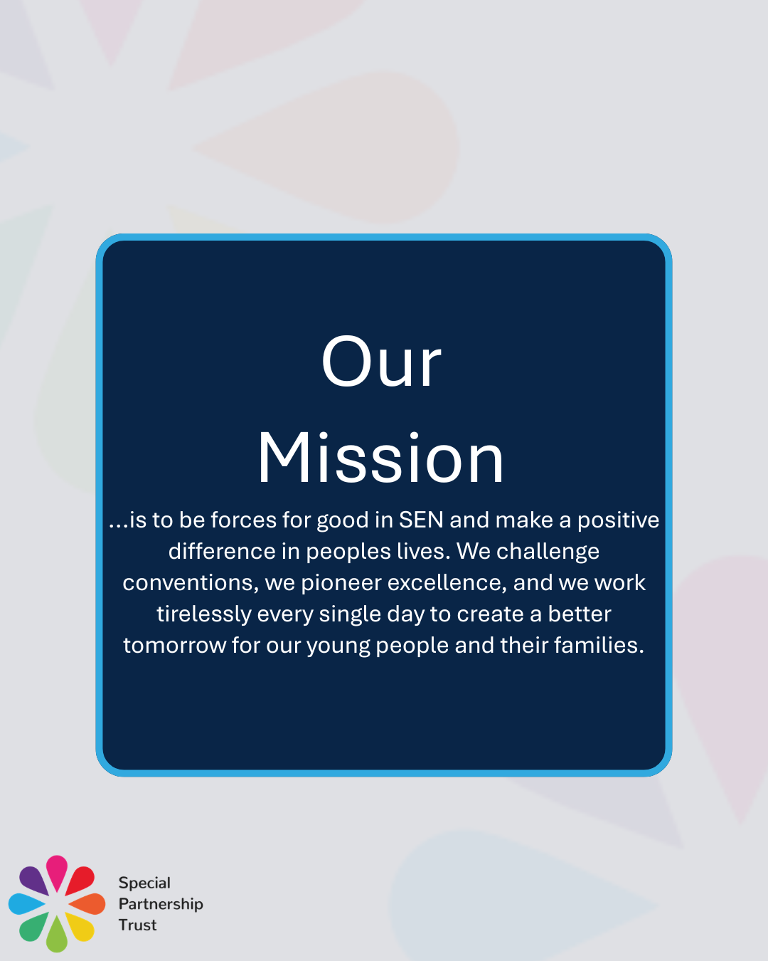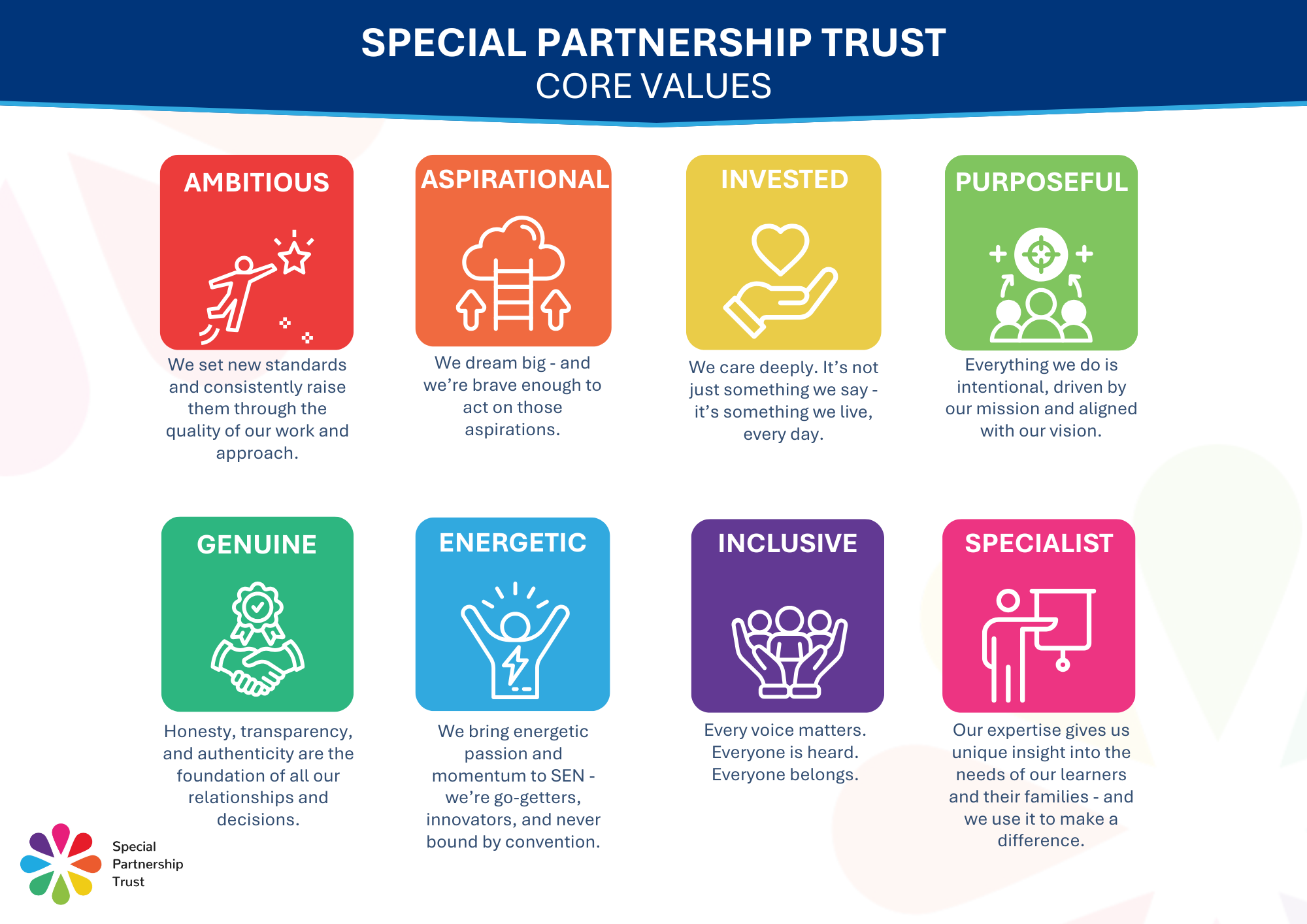 Unlike most trusts, we focus exclusively on specialist education. It’s our passion, our purpose, and our strength. Everything we do is grounded in practice, collaboration, and a commitment to doing what’s right – not just what’s easy.